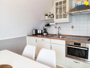 Das Haus Riffstraße 2c - Ferienwohnung Urlaubsoase verfügt über zwei Schlafzimmer, eine Küche mit Kühlschrank und Geschirrspüler sowie ein Bad mit Dusche, Haartrockner und Waschmaschine. Es gibt einen Flachbild-TV, einen DVD-Player sowie einen CD-Player.