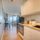 Diese Ferienwohnung bietet einen Balkon, ein Wohnzimmer und einen Flachbild-TV. Die Küche ist eingerichtet mit einem Kühlschrank und einem Ofen, einem Toaster sowie einer Kaffeemaschine und einem Wasserkocher.