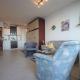Oferta apartamentu obejmuje balkon oraz salon z telewizorem z płaskim ekranem. Aneks kuchenny w Haus Schöne Aussicht, App 1SB608 wyposażono w lodówkę, piekarnik, mikrofalówkę, ekspres i czajnik.