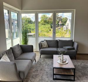 Apartament mieści dwie sypialnie, salon, łazienkę z prysznicem i suszarką oraz kuchnię z lodówką i ekspresem. Ręczniki i pościel są dostępne w apartamencie Haus Seeadler 3 OG.