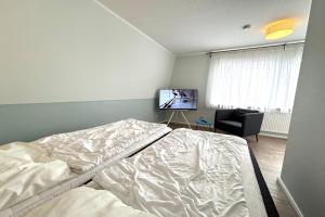 Das Haus Seemöwe Whg 1 umfasst zwei Schlafzimmer, eine Küche mit Kühlschrank und Geschirrspüler sowie ein Bad mit Dusche, Haartrockner und Waschmaschine. Es gibt einen Flachbild-TV.