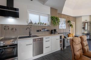 Dom wakacyjny w Haus Seepanorama - Marina Mücheln wyposażony jest w telewizor z dostępem do kanałów satelitarnych. Goście mają do dyspozycji kuchnię z doskonałym wyposażeniem, w tym lodówką, zmywarką i piekarnikiem, a także kilka łazienek (2) z prysznicem oraz bezpłatnym zestawem kosmetyków. Z patio roztacza się widok na jezioro.