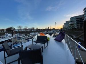 The boat with a terrace and lake views has 2 bedrooms, a living room, a flat-screen TV, an equipped kitchen with a fridge and a stovetop, and 1 bathroom with a walk-in shower. Towels and bed linen are available in the boat. This boat is allergy-free and non-smoking.