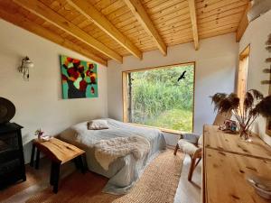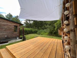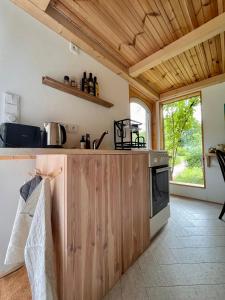 This holiday home has a electric kettle, oven and kitchen. The bathroom is divided into your outdoor dry toilet with a separate outdoor shower, which is heated by a furnace.