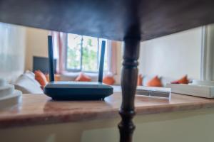 The apartment's kitchen is available for cooking and storing food. The spacious apartment features a washing machine, a wardrobe, heating, a flat-screen TV, as well as garden views. The unit has 7 beds.