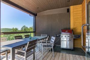 Tato chata s klimatizací má 5 ložnice, kabelovou TV, jídelní část a kuchyň s lednicí a myčkou nádobí.