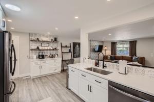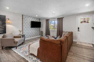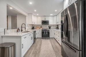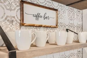 This modern and spacious home has a washing machine, bathrobes and coffee bar.