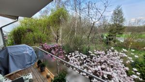 The spacious apartment features 3 bedrooms, 2 bathrooms, bed linen, towels, a flat-screen TV with streaming services, a dining area, a fully equipped kitchen, and a balcony with garden views. Guests at Helle Wohnung mit Balkon 120qm, 4Zimmer can enjoy a meal in the outdoor dining area with views of the quiet street. Helle Wohnung mit Balkon 120qm, 4Zimmer is non-smoking and soundproof.