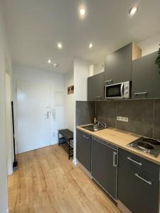 - Small kitchen area,