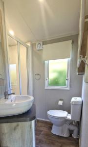 This mobile home consists of 1 living room, 3 separate bedrooms and 2 bathrooms with a shower. Guests can make meals in the kitchen that is equipped with a refrigerator, an oven, a microwave and a toaster. The mobile home provides a seating area, a dining area, a wardrobe, an electric kettle and a flat-screen TV. The unit offers 6 beds.