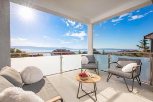 Guests can make meals in the kitchen that is equipped with a stovetop, a refrigerator, a dishwasher and kitchenware. The spacious apartment provides air conditioning, a washing machine, a private entrance as well as a terrace with sea views. The unit offers 4 beds.