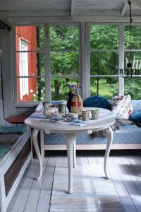 The fireplace is the standout feature of this family room. Guests will find a stovetop, a refrigerator, kitchenware and a microwave in the well-fitted kitchenette. The family room also includes a barbecue. The family room features a private entrance, a tea and coffee maker, a terrace with lake views as well as a private bathroom boasting a walk-in shower. The unit has 5 beds.