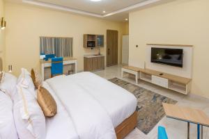 The spacious air-conditioned suite offers a flat-screen TV with satellite channels, a private entrance, a seating area, a safe deposit box as well as pool views. The unit offers 2 beds.