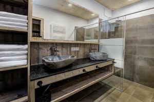 This apartment has a kitchenware, seating area and an infrared sauna.