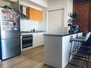 The well-fitted kitchen features a stovetop, a refrigerator, kitchenware and an oven. The apartment offers a washing machine, a private entrance, a tea and coffee maker, a flat-screen TV, as well as city views. The unit offers 1 bed.