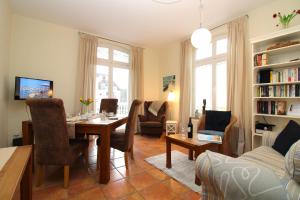 Hermannstraße 20 Fewo 3 offers a spacious unit with 2 bedrooms, a TV, kitchen with dishwasher and oven, washing machine, and bathroom with shower. Guests at Hermannstraße 20 Fewo 3 can enjoy the surroundings from the outdoor dining area.