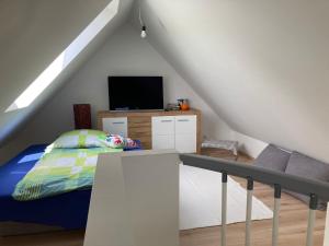 Das die Unterkunft verfügt über einen Garten mit Grillmöglichkeiten und liegt in der Nähe von Radwegen.