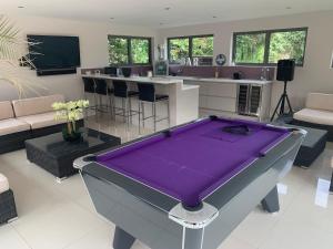 This holiday home features a private pool. Guests will find a stovetop, a refrigerator, a dishwasher and an oven in the kitchen. The holiday home also comes with a barbecue. The spacious holiday home features a flat-screen TV with streaming services, a washing machine, a tea and coffee maker, a game console as well as garden views. The unit is furnished with 3 beds.