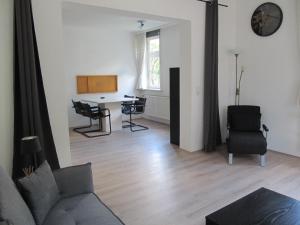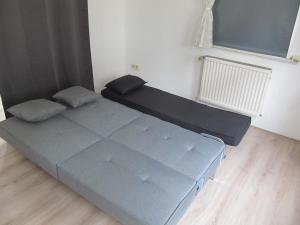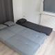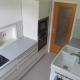 This apartment has a kitchen, sofa bed and a shower.