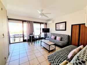 Klimatizovaný apartmán Hibiscus - plage avec Parking - climatisé - wifi má 1 ložnici, kabelovou TV s plochou obrazovkou a kuchyň s lednicí a troubou.