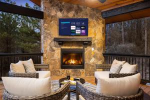 Questa casa vacanze con aria condizionata comprende 3 camere da letto, un soggiorno, una cucina con utensili più frigorifero, e 4 bagni con vasca idromassaggio e set di cortesia. Questa casa vacanze presso Hidden Cabin Among Pines with Hot Tub & Fire Pit mette a disposizione lenzuola e asciugamani.