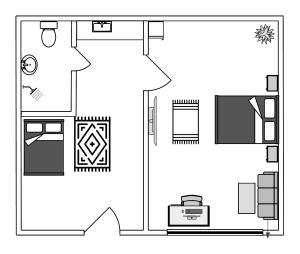 Pokoje: 1The family room features a sofa, a carpeted floor, as well as a private bathroom boasting a shower and a hairdryer. In the fully equipped kitchenette, guests will find a stovetop, a refrigerator, kitchenware and a microwave. The family room offers a private entrance, a tea and coffee maker, a seating area, a flat-screen TV with streaming services, as well as garden views. V této ubytovací jednotce se nachází 2 postele.