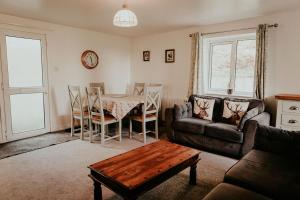 The Barn: The second largest cottage, offering 3 bedrooms, a bathroom with a shower fitted over the bath, a separate toilet, lounge/dining room with a Freeview TV/DVD and a kitchen. The kitchen is fully equipped, including a fridge and separate freezer, microwave, a cooker with an electric oven and hob, and CD player with radio. The Barn sleeps up to 6 people. Dogs are permitted in this house. Children are accepted in this house. Cots are available upon request. There is a large step up into property. All bedrooms are situated on the second floor.