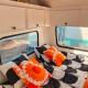 Guests will have a special experience as this mobile home features a sauna. The mobile home offers a private entrance, a seating area, as well as a shared bathroom featuring a shower and a hairdryer. The mobile home provides a dining area, a wardrobe, an electric kettle, as well as outdoor furniture. The unit offers 2 beds.