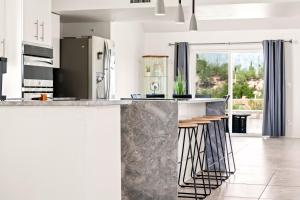 This holiday home's special features are the private pool and the fireplace. This spacious holiday home comprises 3 living rooms, 5 separate bedrooms and 3 bathrooms with a bath and free toiletries. Guests will find a stovetop, a refrigerator, a dishwasher and kitchenware in the well-fitted kitchen. The holiday home also provides guests with a barbecue. The air-conditioned holiday home provides a TV with cable channels, a washing machine, a tea and coffee maker, a wardrobe as well as mountain views. The unit offers 9 beds.
