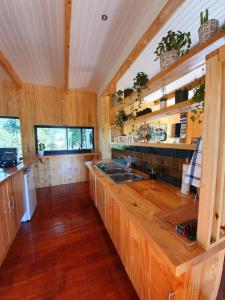 Tato vila má 1 ložnici, obývací prostor, kuchyň s kompletním vybavením včetně lednice a varné desky a 1 koupelnu. Koupelna v ubytování Hillside Hideaway Cabin disponuje sprchou a vířivkou.