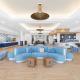 An adult’s pool is also available. It features a sundeck and a pool bar with swim-up seating. Guests have access to the on-site gym and a large game room. The indoor pool can be found inside the 3-story glass atrium.