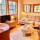 Dieses Chalet mit einer Terrasse und Bergblick hat 1 Schlafzimmer, ein Wohnzimmer, einen Flachbild-TV, eine gut ausgestattete Küche mit einem Kühlschrank und einem Geschirrspüler sowie 1 Badezimmer mit einer Dusche. In diesem Chalet werden Handtücher und Bettwäsche angeboten.