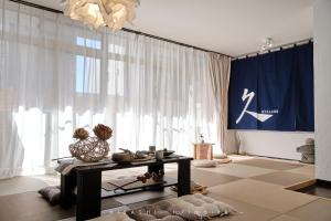 The hot tub is the standout feature of this apartment. Boasting a private entrance, this air-conditioned apartment comes with a kitchen, 2 bedrooms and 1 bathroom with a bath and a shower. Meals can be prepared in the kitchen, which features a stovetop, a refrigerator, kitchenware and a microwave. This apartment has a washing machine, tatami, a flat-screen TV with streaming services and a balcony. The unit has 8 futons.