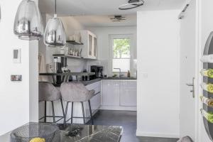 Cet appartement avec climatisation se compose de 2 chambres, d'un salon, d'une cuisine entièrement équipée avec un réfrigérateur et une machine à café, ainsi que de 1 salle de bains avec une douche et des articles de toilette gratuits. Le linge de lit et les serviettes sont fournis par Hochwertige Wohnung in Marburg Nr 5.