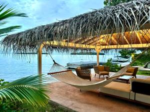 Featuring a private entrance, this spacious villa also is comprised of 1 living room, 4 separate bedrooms and 3 bathrooms with a shower. Guests will find a stovetop, a refrigerator, a dishwasher and kitchenware in the fully equipped kitchen. The villa also has a barbecue. The air-conditioned villa offers a TV with cable channels, a washing machine, a tea and coffee maker, a seating area as well as sea views. The unit offers 5 beds.