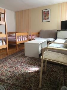 The family room provides a flat-screen TV, a tea and coffee maker, a dining area, a wardrobe as well as an inner courtyard view. The unit offers 4 beds.
