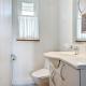 Dom wakacyjny w obiekcie obejmuje 3 sypialnie, kuchnię z lodówką i zmywarką, telewizor, część wypoczynkową oraz łazienkę z prysznicem.