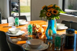 The spacious holiday home is equipped with 3 bedrooms, 2 bathrooms, bed linen, towels, a flat-screen TV, a dining area, a fully equipped kitchen, and a terrace with garden views. Guests at the property can enjoy a meal in the outdoor dining area with views of the quiet street. For added privacy, Holiday Hub - Taupo features a private entrance.