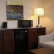 A flat-screen satellite TV, air conditioning and an en suite bathroom are featured in this room. A microwave and a small refrigerator are also included.