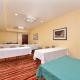 The 24-hour business center is located off of the lobby and a continental breakfast with eggs, bacon, and cinnamon rolls is served in the morning. The front desk is open 24 hours a day.