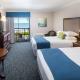This room features a microwave, small refrigerator, and flat-screen TV. A private balcony with limited ocean view is also included. Please note this room is only accessible by stairs.
