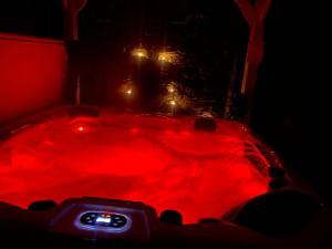 This holiday home features a hot tub and a fireplace. Guests can make meals in the kitchen that is fitted with a stovetop, a refrigerator, a dishwasher and an oven. The holiday home offers a washing machine, a private entrance, tumble dryer, a flat-screen TV, as well as garden views. The unit has 2 beds.