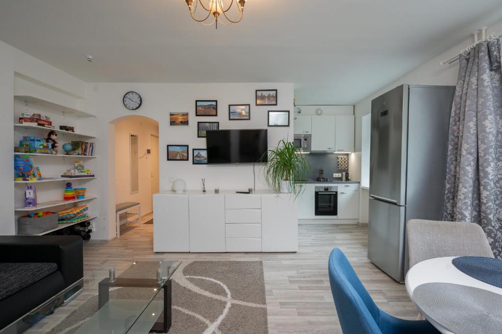 Apartmán v Home in the center of Tartu zahrnuje 1 ložnici, obývací prostor s TV s plochou obrazovkou a plně vybavenou kuchyň.
