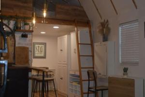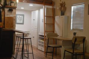 - Small kitchen area,