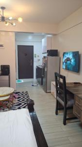 This studio features a fireplace. Meals can be prepared in the kitchen, which comes with a refrigerator, kitchenware, a microwave and an electric kettle. The studio provides air conditioning, a washing machine, a terrace with city views as well as a private bathroom featuring a walk-in shower. The unit offers 1 bed.