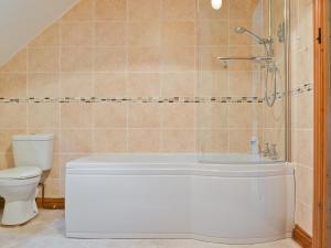 This holiday home provides a fireplace. Featuring a private entrance, this holiday home also comprises 1 separate bedroom and 1 bathroom with a shower. The holiday home's kitchen, which has kitchenware, is available for cooking and storing food. This holiday home features a washing machine, heating and a TV. V této ubytovací jednotce je k dispozici 2 postele.