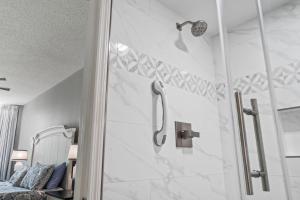 L'alloggio climatizzato di Horizon at 77th Condo ~ sleeps 8 ~ 2B/2B ~ Steps to Ocean vanta 2 camere da letto, soggiorno, cucina con frigo e macchina da caffè, e 2 bagni con doccia e vasca idromassaggio. Horizon at 77th Condo ~ sleeps 8 ~ 2B/2B ~ Steps to Ocean fornisce lenzuola e asciugamani ai propri ospiti.