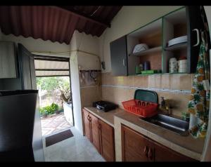 Prázdninový dům Hospedaje Bomboná má 1 ložnici, TV s plochou obrazovkou a kuchyň.