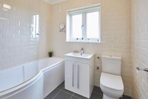 Featuring a private entrance, this holiday home is comprised of 1 living room, 2 separate bedrooms and 1 bathroom with a bath and a shower. In the kitchen, guests will find a stovetop, a refrigerator, kitchenware and an oven. The holiday home features carpeted floors, a seating area with a flat-screen TV with streaming services, a washing machine, a dining area, as well as a wardrobe. The unit offers 2 beds.