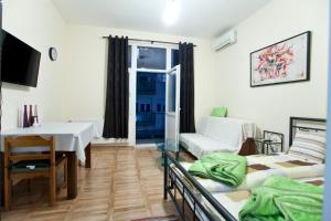 This double room has air conditioning. There is a shared bathroom equipped with a shower.